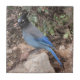 Ein Foto von eines Stellers Jay hockte auf einem Felsen.