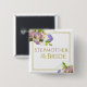 Diese wunderschöne Stepmutter des Bride-Knopfes oder Abzeichens ist perfekt für das Brautparty oder Probe-Dinner, es ist eine gute Möglichkeit, diesen ganz besonderen Gast bei Ihrer Hochzeitsfeier zu identifizieren. Das elegante Design mit goldenem Rahmen und Schriftzeichen, mit einer Reihe von Frühlingsblumen, darunter Rosen, weiße Orchideen, Calla-Lilien und lila Hydrangea.
