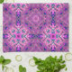 Der Entwurf dieses Tuches erinnert mich an die Siebzigerjahre. Es ist ein geometrisches Muster, das Diamanten, Kreisen und aus Quadraten in den Schatten von Lila besteht. Es gibt die Sterne, die während des Entwurfs vermischt werden.