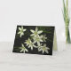Diese schöne Weihnachtskarte mit Kunsthandwerk besticht durch die wunderschöne, ganzjährige Pflanze im Frühling, die als Star of Bethlehem (Ornithogalum umbellatum) bekannt ist. Jede Blume hat sechs weiße Blätter und ein gelbes Zentrum. Sie sind Set auf einem dunklen, fast schwarzen Hintergrund. Mehr Blume sind im Inneren verstreut. Der Text kann angepasst oder entfernt werden.