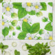 Ich malte Erdbeeren-Blätter, Blüten und Früchte mit Aquarellen, dann scannte ich das Bild und machte daraus ein Muster