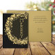Goldrunden, goldene Sterne und schwarze Punkte umgeben das Wort "MERRY" auf der Vorderseite und Ihre Namen und Gruß auf der Innenseite dieser gefalteten Weihnachtsfeiertagskarten.