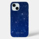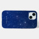 Modern Raum themed iPhone 15 Gehäuse mit einem coolen blauen Nachthimmel Muster mit weißen Sternen und dem Namen Ihrer Wahl.