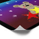 Hübsche Blues und Purples im Hintergrund dieses kleinen Teddybären mit einer Reihe farbiger Sterne. Kleine Sterne und Schneeflocken beleuchten auch den Hintergrund.
