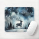 Ein eleganter Hirsch steht unter einem schimmernden Winterhimmel, eingerahmt von schneebestäubten Kiefern und zarten kahlen Bäumen. Die tiefen Mitternachtsblautöne gehen in frostige Weißtöne über, während Sterne und Schneeflocken wie Juwelen über den Himmel verstreut sind. Diese träumerische Waldszene fängt das stille Staunen einer schneereichen Nacht ein und verbindet die Gemütlichkeit einer Cottage mit himmlischer Magie. Perfekt, um die Stille des Winters und die Schönheit des Rhythmus der Natur heraufzubeschwören. KI-generiertes Kunstwerk.