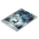 Ein eleganter Hirsch steht unter einem schimmernden Winterhimmel, eingerahmt von schneebestäubten Kiefern und zarten kahlen Bäumen. Die tiefen Mitternachtsblautöne gehen in frostige Weißtöne über, während Sterne und Schneeflocken wie Juwelen über den Himmel verstreut sind. Diese träumerische Waldszene fängt das stille Staunen einer schneereichen Nacht ein und verbindet die Gemütlichkeit einer Cottage mit himmlischer Magie. Perfekt, um die Stille des Winters und die Schönheit des Rhythmus der Natur heraufzubeschwören. KI-generiertes Kunstwerk.