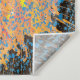 Das Bild weist einen vorwiegend schwarzen Hintergrund auf, der einen starken Kontrast zu den lebhaften Farben im Vordergrund schafft. Der zentrale Bereich des Gemäldes zeigt einen großen orangefarbenen Anstrich, der in alle Richtungen ausstrahlt und ein Gefühl von Bewegung und Energie schafft. Der orangefarbene Berst ist mit zahlreichen blauen Spritzern unterschiedlicher Größe übersät, was das dynamische und dynamische Ambiente noch verstärkt. Es gibt auch Hinweise auf andere Farben, wie Rot, Gelb und Rosa, die sich im Orangenbruch vermischen, was der Komposition mehr Tiefe und Komplexität verleiht. Das chaotische und dennoch harmonische Farbenspiel und die Spritzer machen das Gemälde optisch ansprechend und einladend. Die Kombination aus verschiedenen Farben und Spritzern schafft einen strukturierten Effekt, der das visuelle Interesse der Welt erhöht. Dieses Stück ist ein faszinierendes Beispiel für abstrakte Kunst, indem es kühne Farben und dynamische Muster nutzt, um ein Gefühl von Bewegung und Energie zu schaffen. Es zeichne die Aufmerksamkeit des Betrachters mit seiner lebendigen und energetischen Ästhetik und lädt sie dazu ein, seine faszinierenden Details zu erforschen.