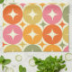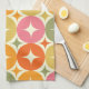 Das ist eine elegante Sternexplosion aus der Mitte des Jahrhunderts auf geometrisch farbigen Kreismustern in rot, orange, olivgrün , gelb und rosa . Es ist großartig aussehendes Küchenhandtuch für jeden, der geometrische Designs zurückdreht