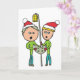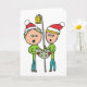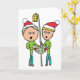 Weihnachtslied Sänger Design zeigt zwei Weihnachtslied Sänger, die Notenblätter und ein Licht teilen. Sie tragen Weihnachtsmützen und werden an eurer Haustür erscheinen, um Weihnachtslieder zu singen und allgemeine frohe Festtagsgrüße zu überbringen!