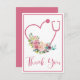 Stethoscope Floral moderne Heart Caregiver, Nurse, or Doctor Carte de remerciements avec un stéthoscope rose moderne en forme de coeur et entouré de jolies fleurs féminines dans des tons de rose, mauve, rose, crème et vert sauge. Parfait pour dire merci au médecin qui vous a aidés ou à ceux que vous aimez dans les moments difficiles ! Contactez-nous à l'adresse bkthompsondesigns@gmail.com si vous avez besoin d'aide pour la conception ou si vous souhaitez obtenir des renseignements sur les produits correspondants.