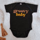 Dieser Jumper mit einem Retro-Schriftart im Stil der 70er Jahre in Senf und Weiß und der Aufschrift "Groovy baby". Dieses einst gearbeitete Baby-Outfit passt perfekt zum STEVIE Groovy Mama T - Shirt: https://www.zazzle.com/stevie_retro_70s_peace_daisy_groovy_mama_t_shirt-235620744441344170