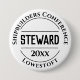 Ein Abzeichen für einen Steward. Ändern Sie den Wortlaut in Ihre Details. Steward Abzeichen. Offizielles Steward Abzeichen. Schwarzer Text auf weißem Hintergrund.