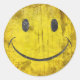 Beklemmender Aufkleber im Gesicht in Gelb und Grau.