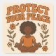 Calme, confiance et clarté de la Manche avec ce design rétro à l'âme. Doté d'une femme sereine en méditation entourée de fleurs florissantes et de l'expression stimulante "Protégez votre paix", cette illustration chaude et terreuse rayonne de force intérieure et d'énergie de guérison.