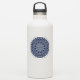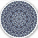 Un mandala en forme de dentelle en cercle concentrique en bleu clair avec des points bleu vif et dorés comme des étoiles, frangés entre les couches, crée un design amusant qui rappelle un ciel étoilé étoilé.
