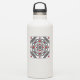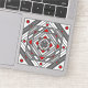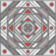 Un mandala carré concentrique prend l'apparence d'un tunnel qui attire le spectateur avec une combinaison de lignes angulaires, de triangles et de cercles dans les tons gris, rouge et blanc pour presque créer une illusion d'optique.