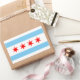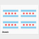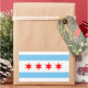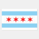 Trois bandes blanches représentent les côtés nord, ouest et sud de la ville. La bande bleue supérieure représente le lac Michigan et la branche nord de la rivière Chicago. La bande bleue du fond représente la branche sud de la rivière et le Grand Canal. La première étoile représente Fort Dearborn. Ses six points symbolisent le transport, le travail, le commerce, la finance, la popularité et la salubrité. La deuxième étoile représente le Grand incendie de Chicago de 1871. Ses six points représentent les vertus de la religion, de l'éducation, de l'esthétique, de la justice, de la bienfaisance et de la fierté civique. La troisième étoile symbolise l'Exposition Colombienne du Monde de 1893. Ses six points représentent des entités politiques auxquelles Chicago a appartenu et les drapeaux qui ont survolé la région : la France, la Grande-Bretagne, la Virginie, le Territoire du Nord-Ouest, le Territoire de l'Indiana et l'Illinois. La quatrième étoile représente le Century of Progress Exposition (1933-1934). Ses points se réfèrent à des droits de gloire : la 2ème plus grande ville des États-Unis (3ème maintenant), la devise latine de Chicago (Urbs in horto - City in a garden), la devise "I Will" de Chicago, la Grand Central Marketplace, Wonder City et Convention City. — paraphrase de Wikipedia
