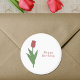 Un autocollant avec une illustration de fleur de tulipe rouge botanique en couleurs pastel et texte personnalisable comme "Joyeux anniversaire" ou "Merci" : parfait pour les amis d'anniversaire, mariage, petites entreprises, amoureux des fleurs, etc. La tulipe est la fleur de naissance d'avril, la fleur d'Aries et est une signification symbolique de l'amour parfait et profond.
