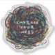 Un tourbillon chaotique de gribouillis colorés forme un motif circulaire. Le centre contient les mots "Embrace Your Mess" en bleu clair.
