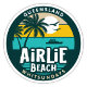Un design audacieux et d'inspiration vintage célébrant Airlie Beach, dans la région Whitsunday du Queensland, en Australie. Cette oeuvre ronde présente une silhouette saisissante de palmiers luxuriants avec un bateau sur les eaux claires et des oiseaux volant au-dessus.