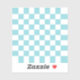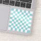 A checkerboard pattern in blue white. The light blue tones add a soft geometric squares feels both modern and timeless.