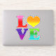 Un design simple mais audacieux, Love texte accentué avec un coeur et des couleurs arc-en-ciel dégradé. Montre un peu d'amour à tout moment ! Montré ici sur un autocollant de découpe personnalisable. Disponible en plusieurs tailles et deux finitions. Idéal pour coller sur des ordinateurs portables, des bouteilles d'eau, votre voiture, des livres à gratter, et plus ! Ils sont résistants à l'eau et réutilisables.