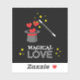 Une illustration d'une baguette magique qui fait des coeurs rouges est sortie d'un chapeau haut avec la citation "Amour magique". Vous rêvez d'être un magicien, un magicien ou un illusionniste ? Un sort d'amour à l'esprit ? Célébrez votre anniversaire, la Saint-Valentin et l'amour avec vos proches plus romantique et spécial.