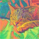 Portrait graphique coloré d'un chat endormi