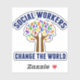 Social Workers Change the World (Travailleurs sociaux Changez le monde), autocollant de citation inspirante. Une mignonne citation de travail social motivationnel écrite autour d'un bel arbre de feuilles arc-en-ciel.