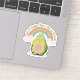 Un mignon avocat faisant du yoga avec un arc-en-ciel sur la tête et une citation motivationnelle minable : l'évitement va bien.