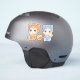 Bébés mignons en caricature dans des rompers animaux. Celui de gauche est habillé d'une combinaison brune avec un bib jaune avec une minuscule abeille. Celui de droite est habillé comme un chat gris et tenant un petit bétail en forme de cloche de chat. La balle brillante se repose entre eux.
