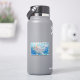 Une créature fantastique avec un mélange de baleines et de taureaux glisse à travers un arrière - plan bleu vibrant et tourbillonnant. Les couleurs se fondent dans un style mosaïque, renforçant la présence mythique de la créature.