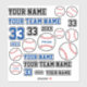Nom de l'équipe du joueur de baseball Numéro de l'année Sticker. Divers autocollants sur le thème du baseball dans les tons bleu, noir et blanc. Vous pouvez personnaliser les autocollants - votre nom, nom d'équipe, numéro d'équipe, numéro d'année et nom sur les balles. Vous avez aussi des balles de baseball de différentes tailles. Ces autocollants sont un cadeau pour vous ou un cadeau pour un joueur de baseball.