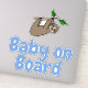Cet adorable autocollant dit "Baby on Board" en bleu clair avec un mignon bébé paresseux. Faites savoir à tout le monde qu'il y a un bébé dans la voiture avec cet autocollant amusant.