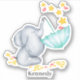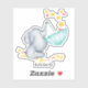 sticker vinyle personnalisé avec un petit éléphant mignon attrapant des étoiles en chute. Cette adorable illustration d'aquarelle a un bébé éléphant équilibrant un parapluie sur son tronc et attrapant les étoiles et les coeurs d'amour. Le modèle est configuré pour vous permettre de personnaliser avec votre nom (ou vous pouvez laisser la zone vide si le texte personnalisé n'est pas requis). Le design a une palette de couleur neutre pour les sexes, jaune, gris et vert aqua. Ces autocollants vinyliques amovibles et imperméables sont parfaits pour votre décoration de pépinière et la décoration des jouets, des bouteilles d'eau et des journaux, etc.