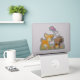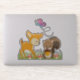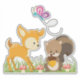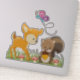 Décal de vinyle avec une jolie illustration montrant un cerf de bébé et un petit écureuil tenant une glande et un papillon volant au-dessus de leur tête. Ces adorables créatures boisées se tiennent debout sur une herbe avec quelques champignons fantaisistes à leurs pieds.