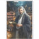 L'image représente un homme royal, sage, aux cheveux longs en argent et à la barbe qui coule, habillé d'élégants peignoirs et blancs qui font allusion à un arrière - plan érudit ou mystique. Il se dresse dans une grande bibliothèque faiblement éclairée remplie de grandes étagères recouvertes de tomes anciennes. L'homme tient un livre ouvert dans ses mains et regarde intensément vers l'avant, exsudant un sens de l'autorité et une profonde connaissance. Des lueurs et des étincelles magiques peuvent être vues près de lui, suggérant un cadre magique ou arcanique. L'atmosphère générale est mystérieuse et intellectuelle, mêlant éléments d'imaginaire et sagesse ancienne.