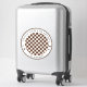 Rappelez-vous comment vous étiez fatigué lorsque vous êtes finalement arrivé à votre destination. Ensuite, vous devez chercher vos bagages et ils ont tous eu la même apparence. Et bien plus, zoomez sur les bagages à droite avec ces autocollants uniques et colorés. Vous pouvez également modifier le nom de votre pays, le nom de votre ville et vos initiales. La motif en damier est beige clair et marron foncé. Le cadre rond est blanc avec un cercle brun foncé fin et le texte est écrit en noir.