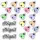 Adorable dame brillante bugs avec des ailes pointillées de pois dans un arc-en-ciel de couleurs dont le bleu, le violet, le rose, l'orange, le jaune et le vert. Personnalisez avec le nom de votre choix.