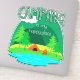 Un autocollant mignon qui dit "Camping is my happy place" avec une image mignonne de camping au bord d'un lac avec des montagnes dans l'arrière - plan et les arbres. Parfait pour un ordinateur portable, un téléphone, un casque, un skateboard ou n'importe où d'autre que vous pouvez penser à le coller.