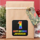 Ce design joyeux, amusant et coloré autocollant d'anniversaire comporte un grand nombre de "1" et le message "HAPPY BANTHDAY", tous deux colorés avec un motif inspiré par un gradient de spectre arc-en-ciel, avec un nom personnalisé jaune gras. L'arrière - plan est noir de couleur. Des autocollants amusants comme celui-ci pourraient être utilisés pour envelopper un cadeau d'anniversaire ou un cadeau offert à quelqu'un qui célèbre son 1er anniversaire, ou pourraient être donnés aux invités à une fête d'anniversaire ou à une fête. [~Z0000480]