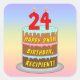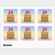 Ce sticker carré d'anniversaire amusant et joyeux présente une représentation de type dessin animé d'un gâteau d'anniversaire à trois niveaux avec des bougies en forme de chiffres sur le dessus montrant le numéro "24", avec le message "HAPPY 24TH BIRTHDAY", et un nom de destinataire modifiable. L'arrière - plan dispose d'un motif multicolore pastel en arc-en-ciel inspiré du spectre dégradé. Des autocollants à thème d’anniversaire comme ceux-ci peuvent être utilisés ou donnés à une fête d’anniversaire célébrant le vingt-quatrième anniversaire de quelqu’un, ou peut-être utilisés pour préparer des cadeaux, des cadeaux ou des invitations à un tel événement. [~Z0000624]
