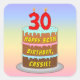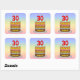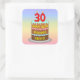 Ce design d'autocollant carré d'anniversaire chatoyant et coloré présente une représentation de dessin animé d'un gâteau d'anniversaire à trois niveaux avec des bougies en forme de chiffres sur le dessus montrant le numéro "30", avec le message "HAPPY 30TH BIRTHDAY", et un nom de destinataire modifiable. L'arrière - plan dispose d'un motif multicolore pastel en arc-en-ciel inspiré du spectre dégradé. Des autocollants sur le thème de l’anniversaire, comme ceux-ci, peuvent être distribués ou utilisés à une fête pour célébrer le 30e anniversaire de quelqu’un, ou peut-être utilisés pour préparer des invitations, des cadeaux ou des cadeaux pour un tel événement. [~Z0000624]