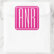 Sticker Carré 3 Initiales Monogramme | Blanc sur rose chaud