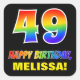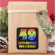 Ce sticker coloré, amusant et joyeux thème d'anniversaire comporte un grand nombre de "49" et le message "HAPPY BANTHDAY", tous deux colorés avec un motif inspiré par un gradient de spectre arc-en-ciel, avec un nom personnalisé jaune gras. L'arrière - plan est noir de couleur. Des autocollants amusants comme celui-ci peuvent être utilisés pour envelopper les cadeaux donnés à quelqu'un pour célébrer son 49e anniversaire, ou peut-être être donnés aux participants à une fête d'anniversaire ou à une fête. [~Z0000480]