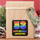 Cette conception amusante, joyeuse et colorée d'autocollant d'anniversaire comporte un grand nombre de "53" et le message "HAPPY BANTHDAY", tous deux ayant un dégradé arc-en-ciel coloré inspiré couleur motif, ainsi qu'un nom personnalisable jaune gras. L'arrière - plan est noir de couleur. Des autocollants amusants comme celui-ci peuvent être utilisés pour emballer des cadeaux donnés à quelqu'un pour célébrer son 53e anniversaire, ou peut-être distribués aux participants à une fête d'anniversaire ou à une fête. [~Z0000480]