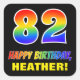 Ce design coloré, gai et amusant autocollant d'anniversaire comporte un grand nombre de "82" et le message "HAPPY BANTHDAY", tous deux avec un dégradé de arc-en-ciel coloré inspiré couleur motif, avec un nom personnalisable jaune gras. L'arrière - plan est noir de couleur. Des autocollants amusants comme celui-ci peuvent être utilisés pour envelopper des cadeaux donnés à quelqu'un pour célébrer leur quatre-vingt-deuxième anniversaire, ou peut-être être donnés aux invités à une fête d'anniversaire. [~Z0000480]