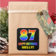 Ce sticker joyeux, amusant et coloré sur le thème de l'anniversaire comporte un grand nombre de "87" et le message "HAPPY BANTHDAY", tous deux colorés avec un motif inspiré par un gradient de spectre arc-en-ciel, avec un nom personnalisable jaune gras. L'arrière - plan est noir de couleur. Des autocollants amusants comme celui-ci peuvent être utilisés pour envelopper les cadeaux donnés à quelqu'un pour célébrer son quatre-vingt-septième anniversaire, ou peut-être être donnés aux invités lors d'une fête d'anniversaire ou d'une fête. [~Z0000480]