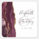 Cet élégant autocollant mariage moderne présente une aquarelle bordeaux design géode d'aquarelle ornée d'une parties scintillant en faux or. Customisez facilement le texte gris fusain sur un arrière - plan blanc, avec les noms de la mariée et du marié en calligraphie manuscrite sur une grande et pâle esperluette bordeaux.