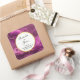 Mariage merci autocollants avec un design abstrait élégant. Couleur améthyste violet foncé avec des rubans d'or nichés entre des strates stratifiées. Un design riche et magnifique. En haut, un cadre en cercle blanc avec une fausse bordure en feuille d'or, avec votre texte personnalisé à l'intérieur.